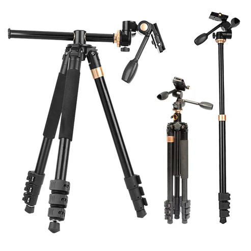 Premium finish light weight professional tripod with adjustable height, multi level locking and steady rubberized legs. Compatible with most video cameras, digital cameras, still cameras, GoPro devices and smartphones. Multipurpose head with Quick Release helps ensure fast transitions between shots. Built-in bubble head to adjust horizontal position and 3-way head with adjustable pan to allow for tilt and swivel motion with portrait or landscape options. This professional tripod features multipurpose head for DV camera’s, convenient accessories hook to latch all your shoot belongings, recommended max load weight is 5kg for optimal performance